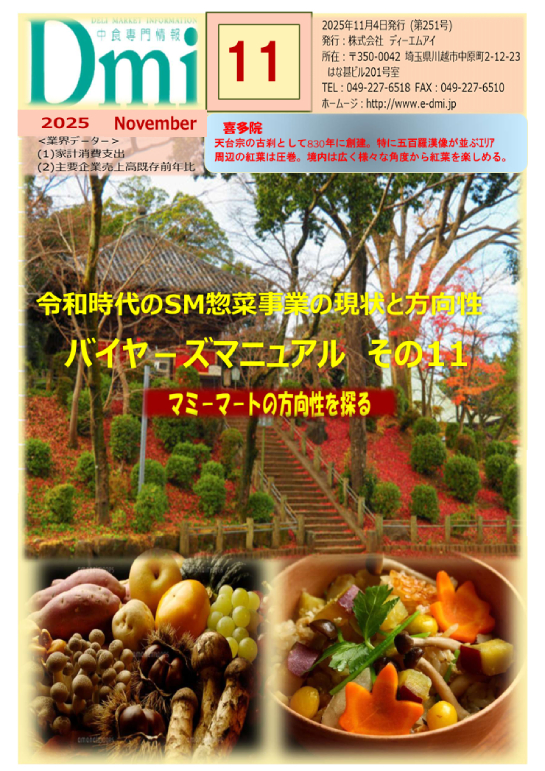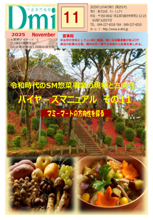 中食専門情報「Dmi」は、今話題のマーケット情報、トレンドへの対応などを特集して毎月発行しております。各種データ、品質衛生管理、マーケット情報、すべて最新のものをお届けします。